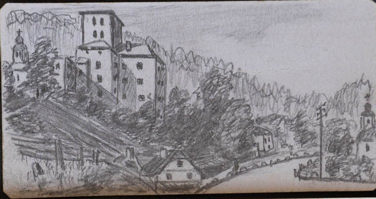 | Sketch of Schloos Waldenstein by POW R. Norris from New Zealand |