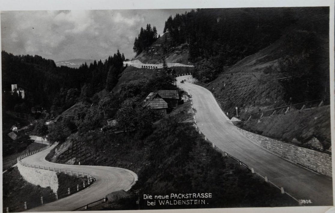 By escaping from a Work Camp at Radmer, and being on the run for seven days, Walter Wojciech (on the left in the photo below) and Charles Martin, like many other POWs, earned the dubious privelege of a stay at Schloss Waldenstein. During that time, they were put to work building the road over the mountain to Packsattel.
