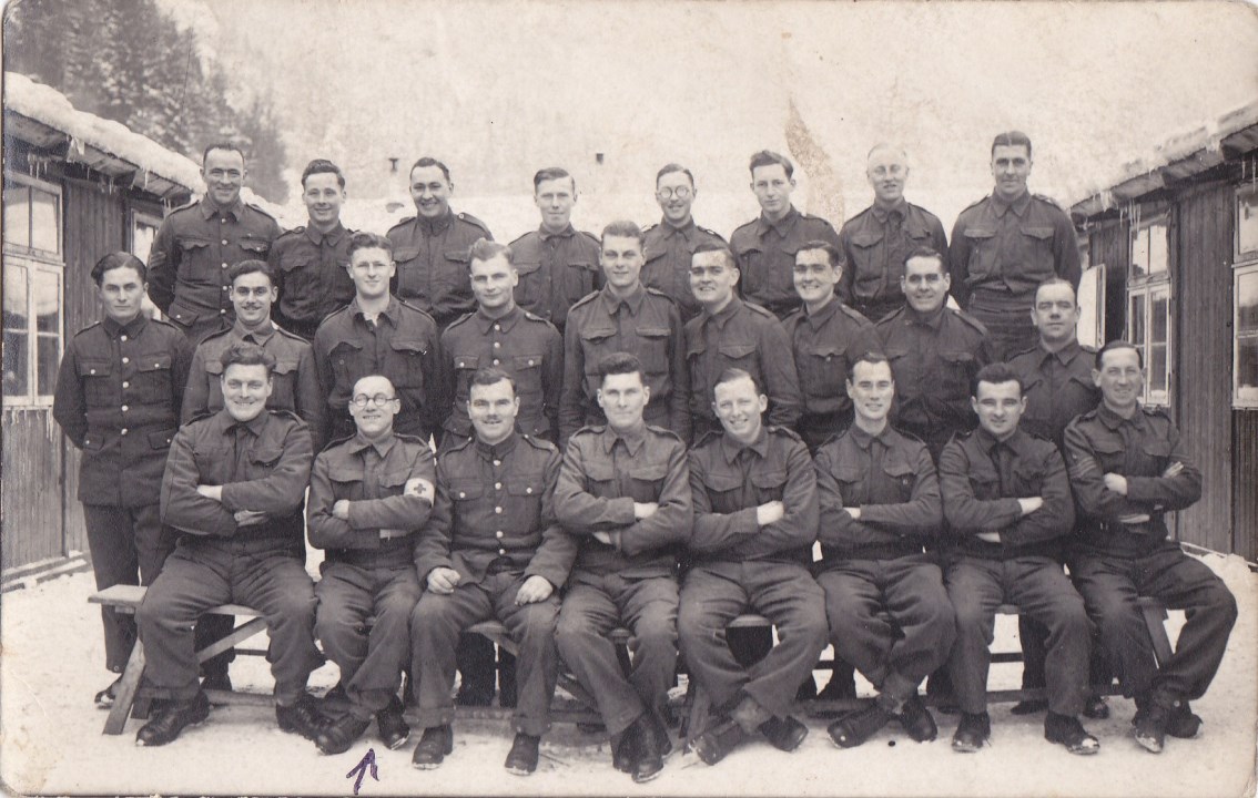 Photos and names kindly supplied by Norman Thompson, son of Spr Norman Thompson, Kaye Clough, daughter of Pte E.G. Halls, Iulia Wishart, neice of Joe Wishart, Pauline Williams, daughter of Leonard Verrall and Joyce Purvis, daughter of Henry Ferguson. The bottom centre photo shows Alec Robertson carrying a half-bag of cement up to the Avalanche Warning Lookout Station.